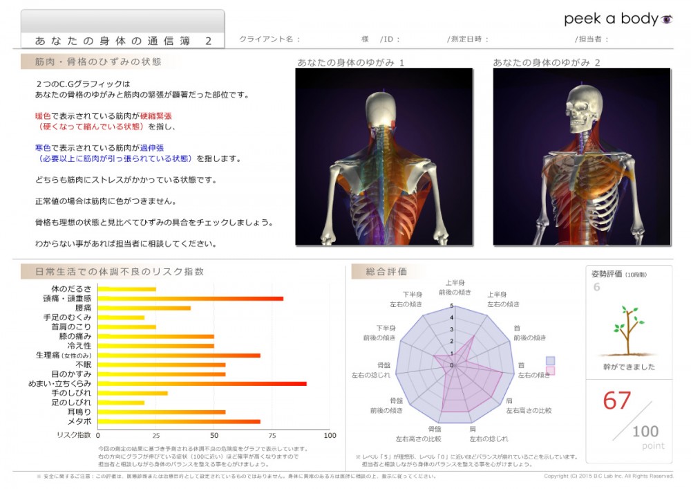 5分ほどのカメラ撮影後からだの筋肉の緊張や骨格の状態、