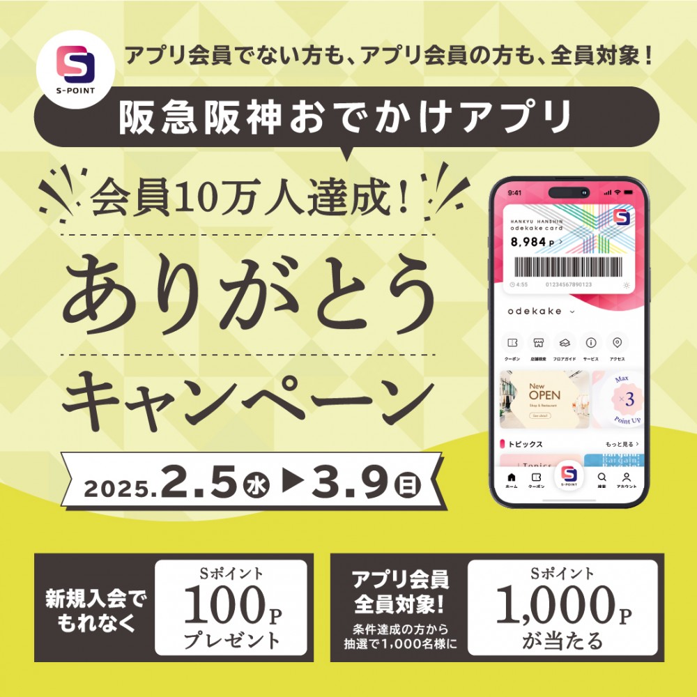 本日より「阪神阪急おでかけアプリ10万人達成!ありがとうキャンペーン」を実施!